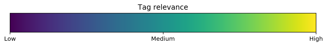 Tags are colored according to relevance. The size of the tag is proportional to its popularity.